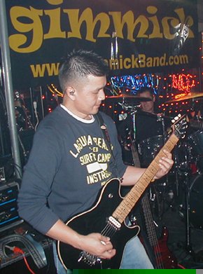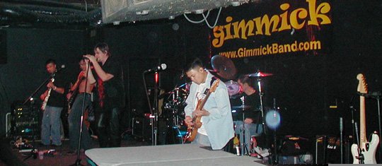 Did Gimmick Get Started ? Why the Name Gimmick ..is there one ? I moved back from Nebraska about 3 ½ years ago and I got a hold of Kip Porter and the original line up was to include Jimmy but because of personal reasons he was unable to go on with the band in the beginning. We have gone through 2 bass players, Todd from the Screamin' Peas and Darin Casey from the McKenzies; and one guitarist Blake Korns who originally came up with the name Gimmick and is now in Insane Jane in Pella, Iowa. |