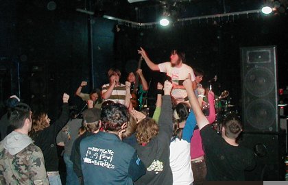 10. What is the best gig you have done to date ? May 28th, School's out show. We tore the shit out of the Vaudeville Mews that night. Stage diving, dancing, and just everyone going crazy: The way a show should be. 11. What is the worst ... or any horror story about just getting it all done and ready to roll ? Man, I don't really get this question. All I know is that we always leave something behind at shows, sometimes at least. 12. I noticed you guys are pretty rowdy on stage any body ever get hurt ...or equipment messed up ? Nah, nothing usually gets too messed up. We don't try to get too rowdy, just fun. Nothing better than seeing a whole band up on stage having a great time. |